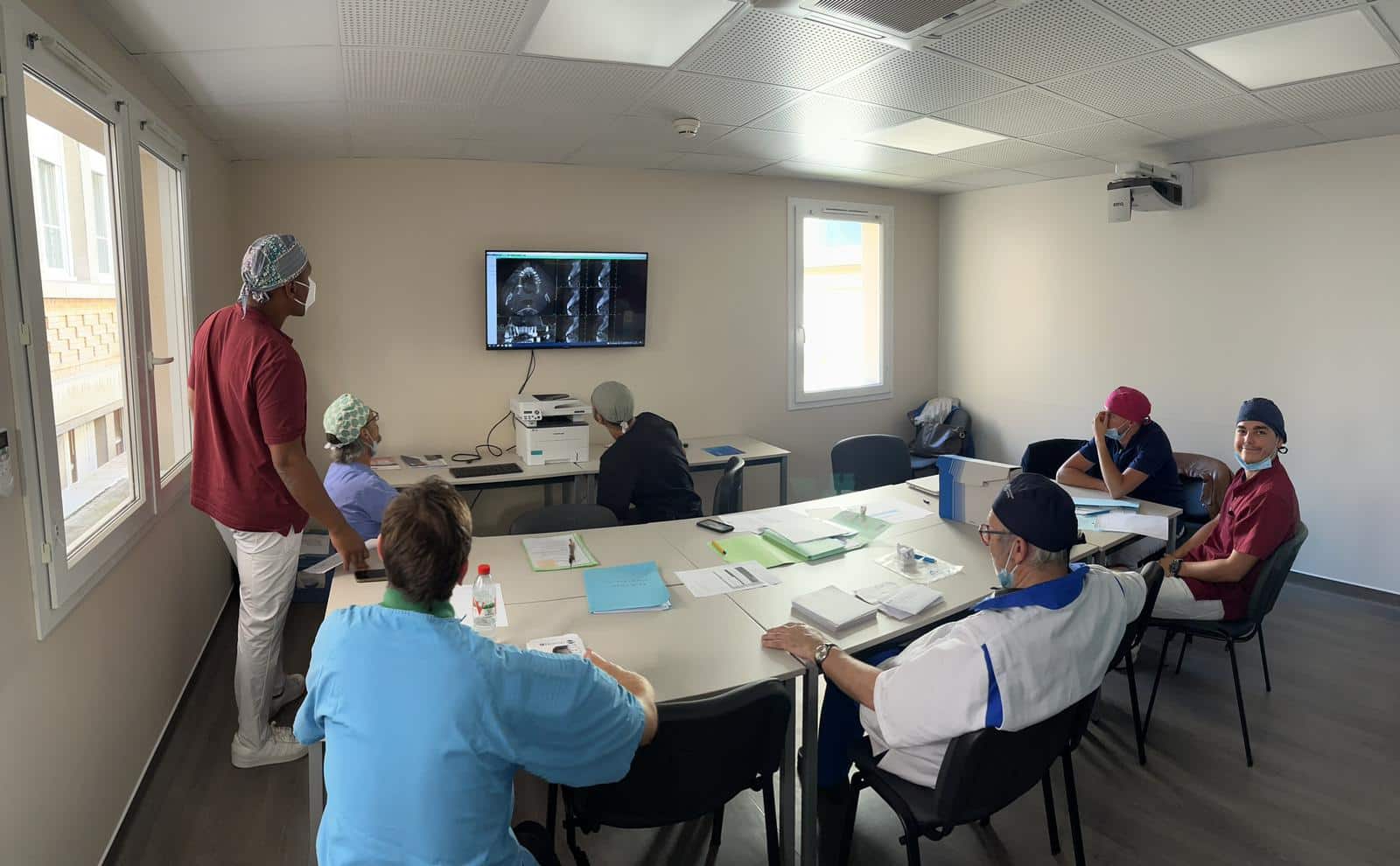 Le service d’implantologie situé au sein du centre hospitalier régional Simone Veil de TROYES, mis en place depuis 2020, a été totalement rénové en 2022 avec la création d’un espace dédié aux praticiens en formation au sein de la SFBSI.